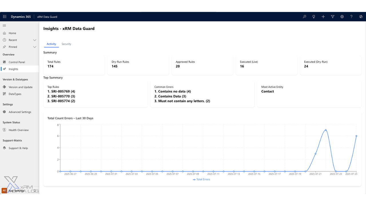 xRM Data Guard is an essential add-on for companies using Microsoft Dynamics that want to maximize their data quality. With automated checks, flexible rules, and comprehensive dashboards, the app provides a complete solution for improving data integrity and efficiency in Dynamics.